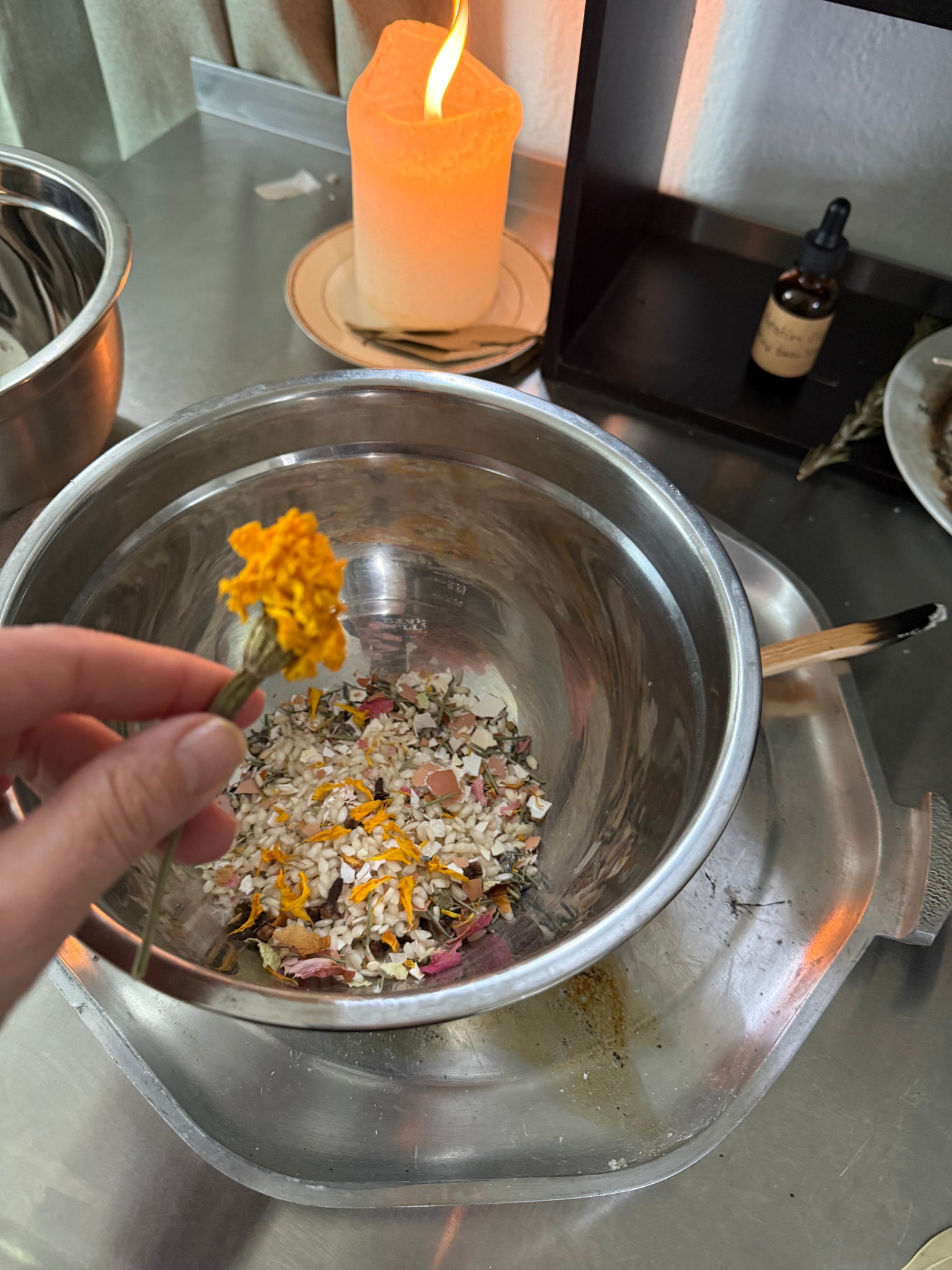 Light the candle on top of the sacred blend of herbs and recite the spell 3xs. Then burn the paper and watch the candle envisioning your name imbued with power, beauty and glamour while watching the flame. This spell takes approximately 20 min and should be performed in conjunction with your beauty ritual using Star Seed Serum.